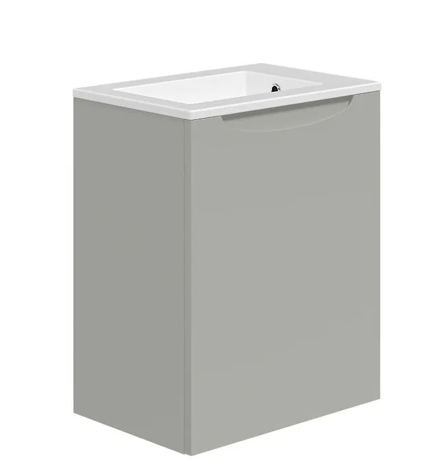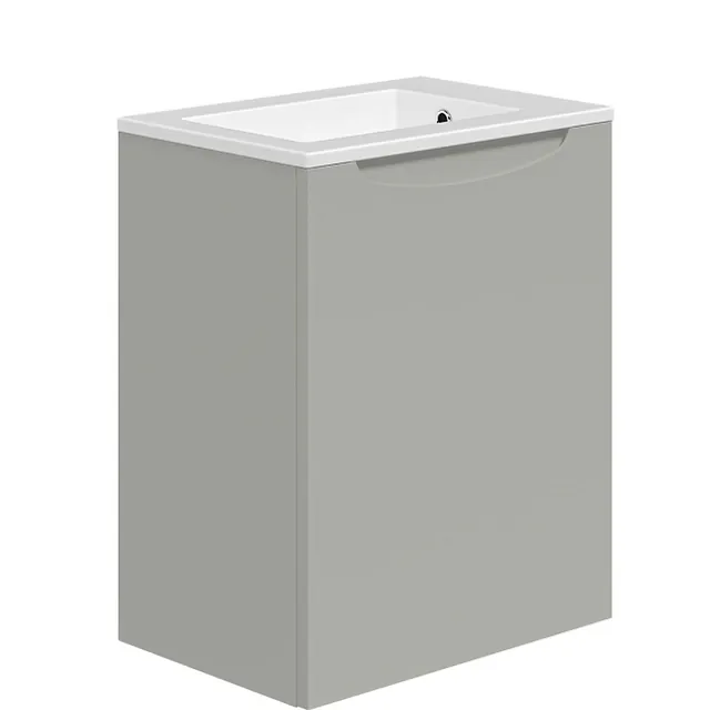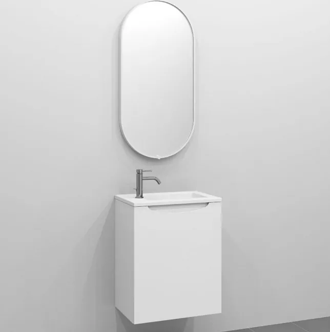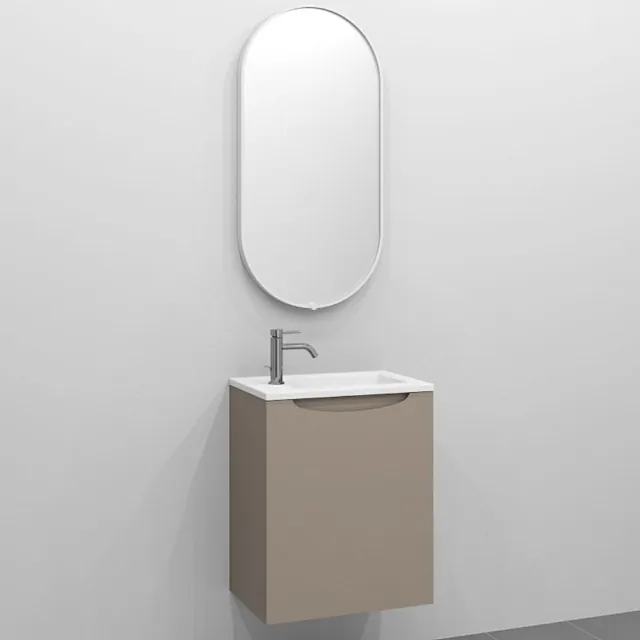 Pakken inneholder et underskap og støpeservant. Et elegant håndtak fins integrert på toppen av underskapet. Hylleplate er også inkludert. Servanten har overløp og hull for armatur som er plassert på siden. Dette gjør av mer plass til bassenget. Servanten er også vendbar slik at du kan velge å plassere møbelet til venstre eller høyre.