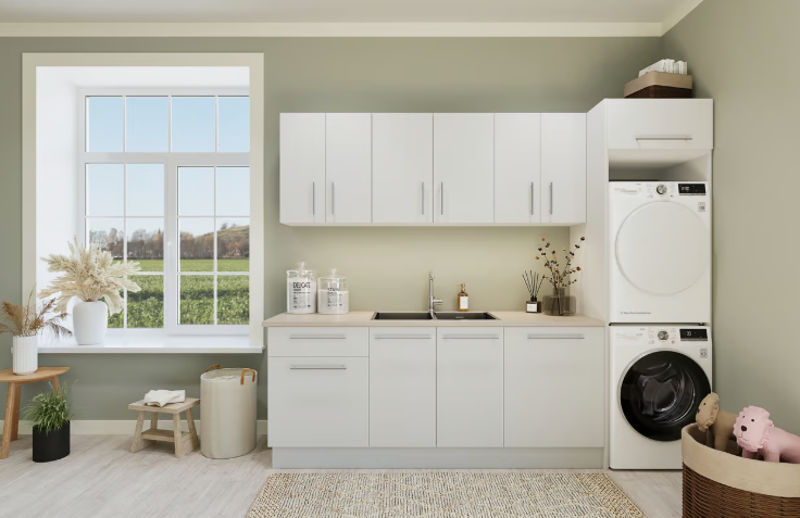 Velg blant vårt varierte utvalg av farger, håndtak og funksjoner for å sette ditt personlige preg på vaskerommet. Alterna tilbyr 6 forskjellige fargealternativer, inkludert hvit høyglans, grå matt, hvit matt, sand matt, eik, og mørk eik. Våre møbler er laget av fuktbestandig MDF og kommer med lakkerte fronter for langvarig kvalitet.